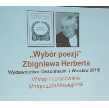 10 stycznia o godzinie 18.00 w Klubie Pro Libris im. Andrzeja K. Waśkiewicza (Biblioteka im. C. Norwida) odbyła się prezentacja książki "Zbigniew Herbert. Wybór poezji" prof. dr hab. Małgorzaty Mikołajczak.