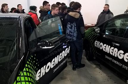Na początku, po krótkiej prezentacji firmy, uczniowie wysłuchali wykładu na temat „Standardów ładowania pojazdów elektrycznych". Następnie, na hali produkcyjnej zapoznali się rodzajami ładowarek i ich montażem. Na koniec uczniowie mogli przejechać się samochodami elektrycznymi.