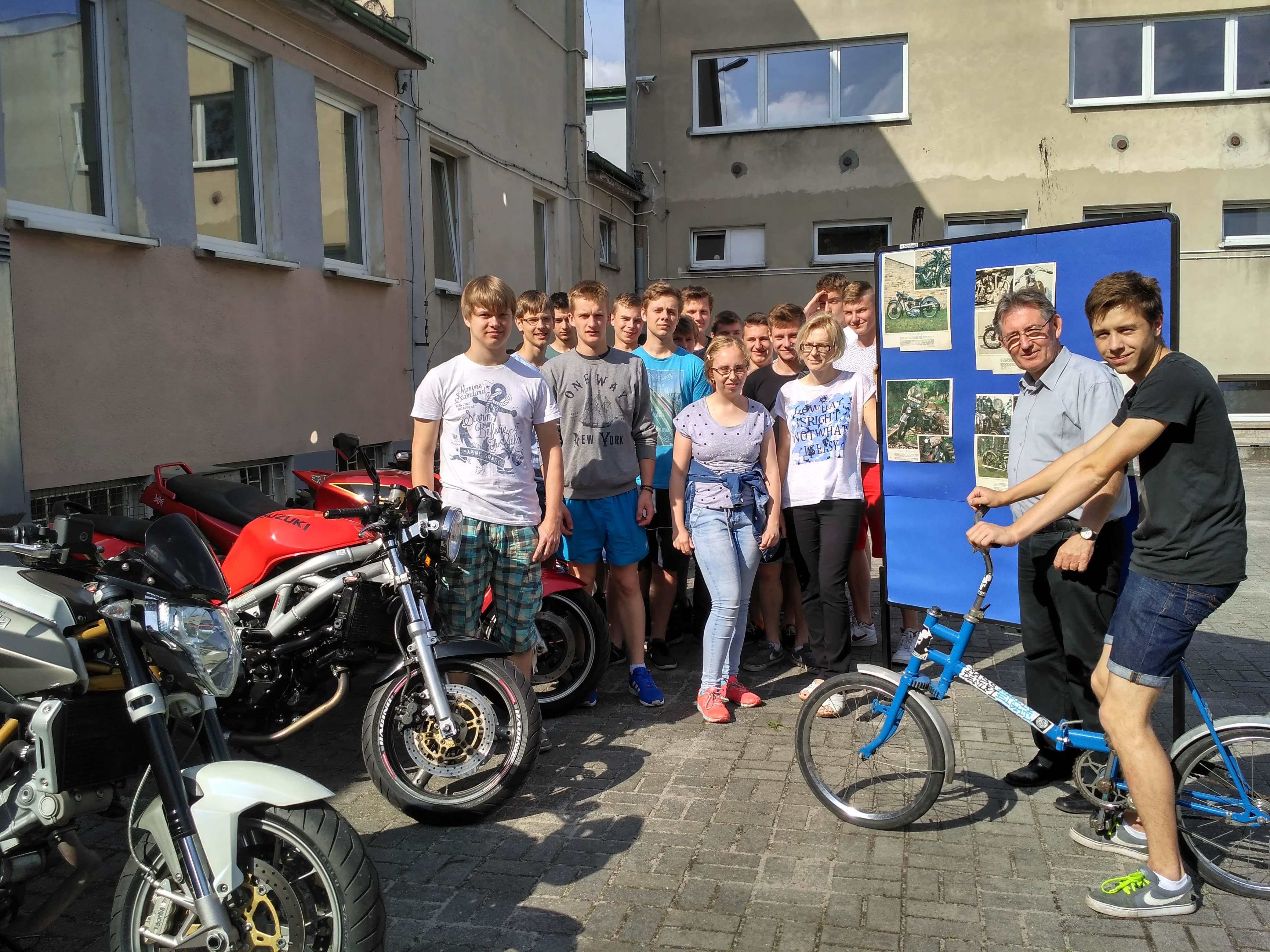 Już tradycyjnie, w pierwszy piątek czerwca, w naszej szkole odbywa się wystawa motoryzacyjna. Uczniowie, nauczyciele i sympatycy motoryzacji wystawiają swoje "maszyny". Szybkie, eleganckie, zabytkowe motocykle i samochody można odlądać na szkolnym dziedzińcu. Imprezie towarzyszą liczne konkursy i zabawy związane z motoryzacją.